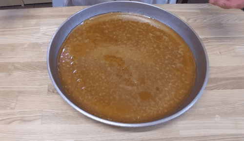 Wait a few minutes for the caramel to cool, remove it from the dish, and then stretch it by hand until it turns white.