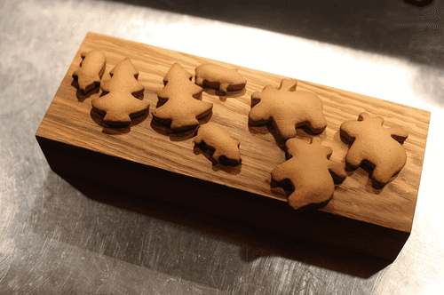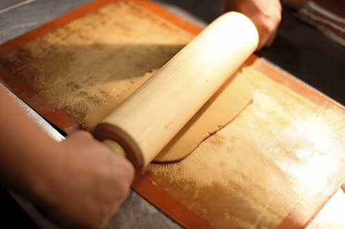 Cut out with a mold, place on a parchment-lined baking sheet, and bake at 180 degrees for 6–10 minutes (depending on thickness).