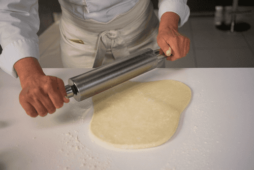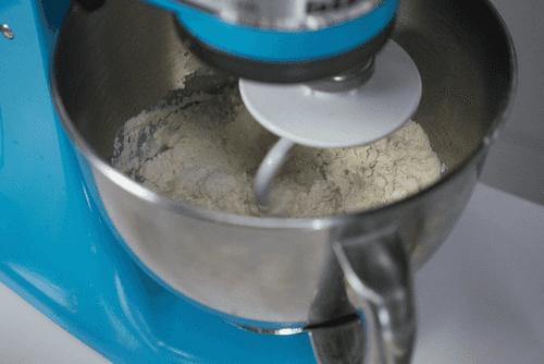 Knead the dough in a mixer with a hook attachment for 10 minutes. Start at low speed until all ingredients are combined, then you can increase the speed. Knead the finished dough by hand, wrap it in plastic wrap, and refrigerate for at least 30 minutes.