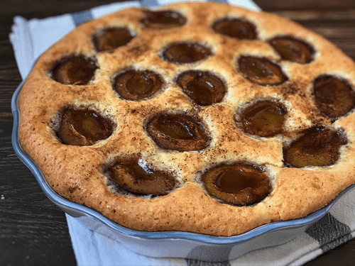 Plum pie is a cozy treat that comes from European cuisine. Its roots trace back to traditional village recipes where seasonal fruits played a key role in baking. The sweet, airy dough infused with the aroma of butter pairs wonderfully with the tart-sweet plums that caramelize during baking, creating a rich and deep flavor. A light hint of cinnamon adds warm spice to the bake, while cane sugar contributes a slight caramel crunch. This pie is an ideal choice for cozy family tea times and a great way to enjoy seasonal fruits.