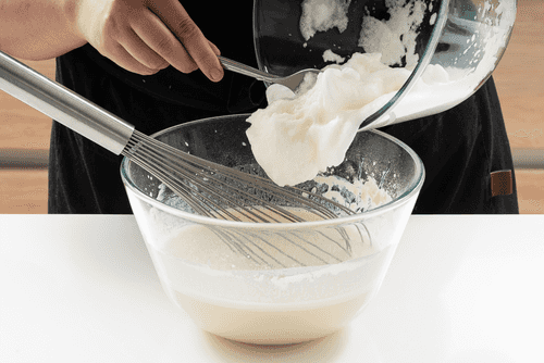 Whip the egg whites into a foam, add to the yolk mixture, and mix.
