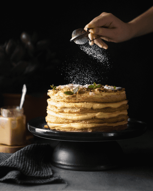 Торт «Наполеон» — одно из самых популярных и любимых лакомств русской кухни. Его история восходит к началу XIX века, когда во Франции появился многослойный пирог, названный в честь императора Наполеона Бонапарта. В России десерт приобрел свою уникальную форму, став символом нежности и изысканности. Этот рецепт предлагает удобный вариант приготовления, используя готовое слоеное тесто. Хрустящие коржи, пропитанные воздушным заварным кремом с ванильными нотками, создают восхитительное сочетание текстур. При желании можно добавить ягоды или фрукты, чтобы придать десерту свежесть. «Наполеон» — идеальный выбор для торжественных событий и уютных вечеров, ведь его утонченный вкус и нежная структура делают каждый кусочек наслаждением.