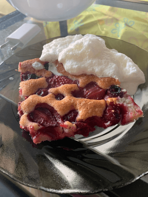This exquisite cake with raspberry and cherry is a true masterpiece of European cuisine, combining the tenderness of the dough and the sophistication of berry flavors. The origins of such pastries trace back to the traditions of French and Italian confectioners, where fruits and liqueurs harmoniously blend with airy bases. Berries soaked in creamy 'Baileys' liqueur give the dessert a luxurious taste with light caramel and vanilla notes. The soft dough, baked at 200 degrees to a golden hue, serves as an ideal backdrop for the berry richness. This cake is perfect for festive occasions, romantic evenings, or cozy family tea times. It can be served warm or chilled, allowing different facets of its flavor and texture to be revealed.
