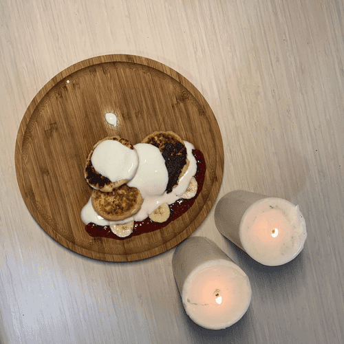 Unusual syrniki with liqueur are an exquisite blend of classic Russian syrniki and a light alcoholic accent. Their history begins in traditional cuisine, where cottage cheese dishes hold a special place, but here they receive a modern touch with the addition of Baileys. Soft inside with a crispy golden crust, they have a delicate creamy flavor with subtle notes of vanilla and liqueur. Served with yogurt, jam, and fresh banana slices, they gain a special sweetness and balance, turning each portion into a true dessert. These syrniki are perfect for a cozy family breakfast or an unusual treat at a party when you want to impress guests with sophistication and a new take on a classic dish.