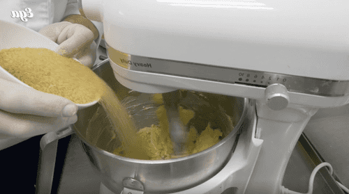 Place 250 g of butter in the mixer bowl and start mixing at low speed. Add brown sugar and continue mixing until the sugar crystals dissolve.