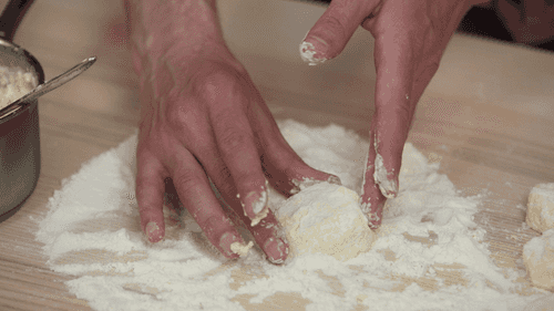 Make cheese pancakes. You can wet your hands to prevent sticking. Roll them one by one or make a sausage and cut it.