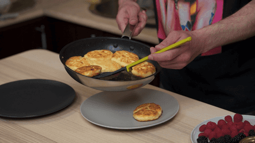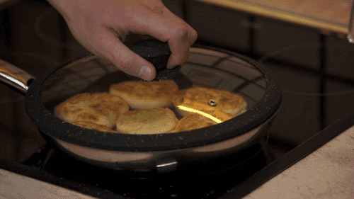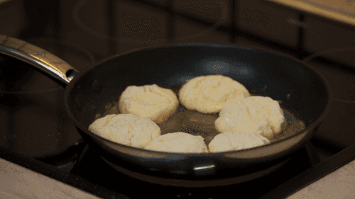 Place the cheese pancakes on a heated skillet.