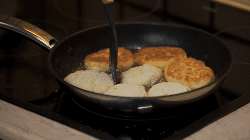 Fry on medium heat for about 3 minutes on each side until a characteristic golden crust forms.