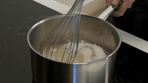 Add sugar and, stirring actively, bring the mixture to 110 degrees.