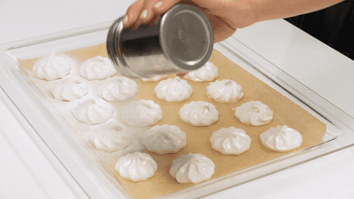 Pipe the marshmallow onto parchment. Leave the marshmallow for at least 5 hours, preferably overnight.