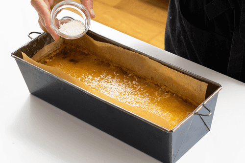 Cool the pie in the mold, sprinkle with the remaining coconut flakes. Cut into strips 4 cm wide.