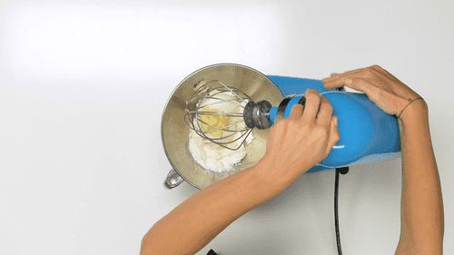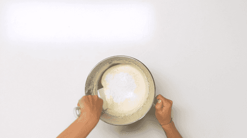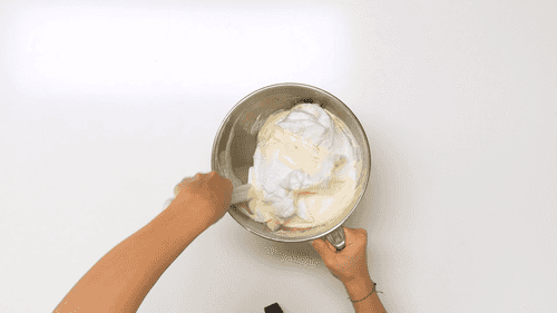 Carefully fold the egg whites into the cheese mixture, mixing with a spatula.