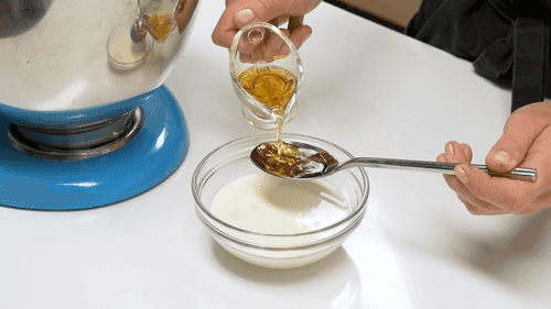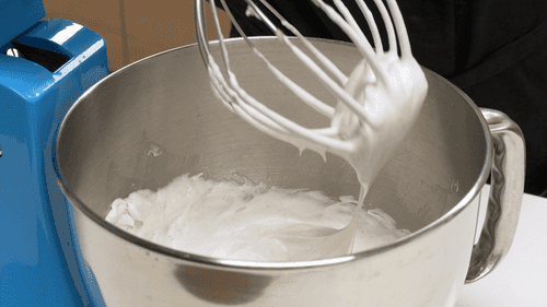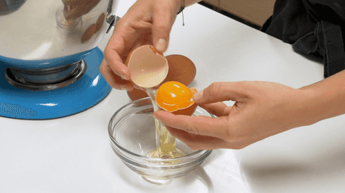 Whip the egg whites separately until foamy, then add sugar in two parts, add vanilla sugar and whip to stiff peaks.