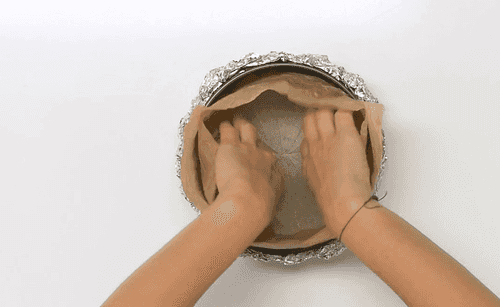 Preheat the oven to 160 degrees. Line a 20 cm diameter pan with baking paper. If the pan is removable, wrap it tightly in foil.