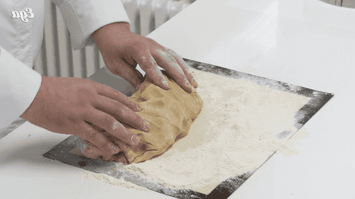 Add eggs to the mass and mix. Gradually incorporate the flour, first with a spatula and then by hand. The dough should be soft and pliable.