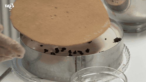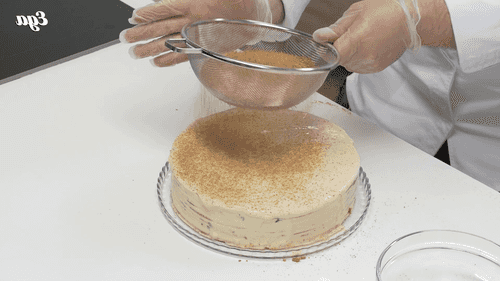 Make crumbs from the cake scraps using a blender and sprinkle them on the cake.