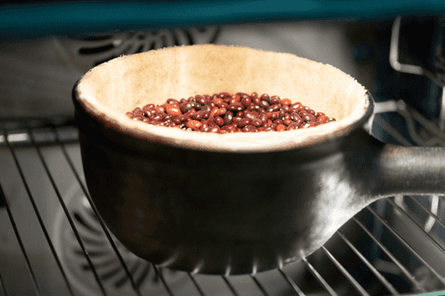 Pour in the dry beans (you can line the pot with parchment paper) and place the pot in an oven preheated to 200 degrees for 15-20 minutes.