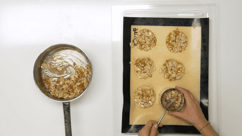 Spread the nut mixture at the bottom of small muffin molds or on parchment paper. Place in an oven preheated to 170 degrees for 5-10 minutes or until the nuts turn golden.