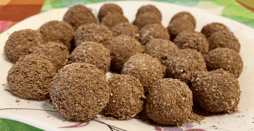 Grate the chocolate. Roll small balls from the cottage cheese mixture and coat them in chocolate crumbs.