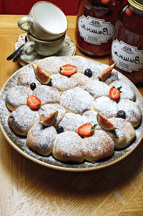For the filling, separately fry frozen berries in sugar caramel. To make the caramel, melt about 2 tablespoons of sugar for each filling in a pan. At the end of frying, add starch.