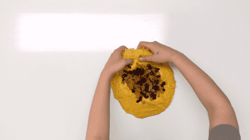 Mix dried fruits with rum into the dough, folding until they are combined.