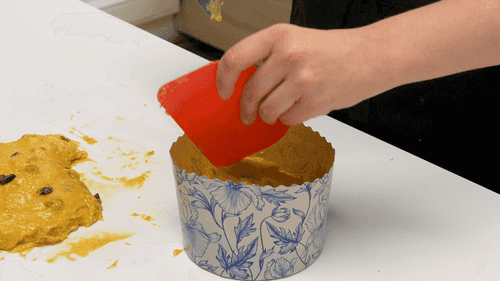 Place the dough in a paper mold for Easter cake with a diameter of 18 cm or in several smaller molds. They should be filled to 2/3. Put in a warm place for 1 hour or more until the dough rises above the edge of the mold.