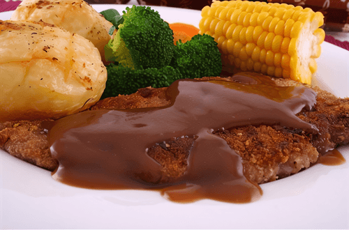 Red wine sauce is a refined element of European cuisine that adds elegance and subtle depth of flavor to dishes. It has roots in classic French gastronomy, where wine is used to create rich and sophisticated sauces. This sauce features sweet-fruity notes from dry red wine and sugar, while lemon zest adds a fresh acidity. Its consistency is smooth and velvety due to potato flour. It pairs perfectly with meat dishes, especially roasted beef and duck, and can transform the taste of vegetable sides. It is served warm to fully release its aroma, complementing the meal with a noble hint of wine notes.