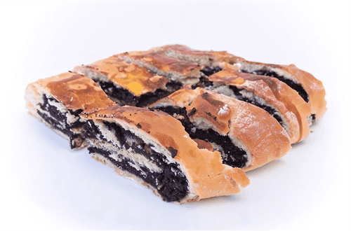 Roll the dough into a thin layer and evenly spread the poppy filling over the surface. Roll the dough into a log so that the poppy is inside. Cut into rolls 5 cm high.