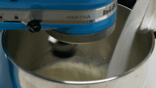 Gradually add melted butter to the eggs, whisking at low speed to prevent the foam from collapsing.
