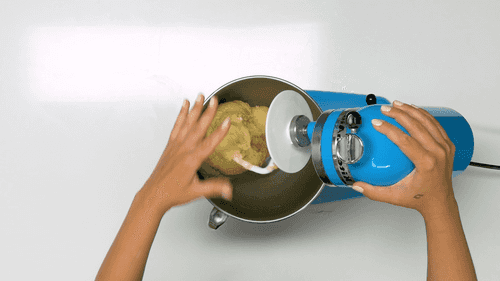 Add vanilla extract, starter, and flour to the egg mixture and knead the dough with a hook attachment. The dough should form into a ball and not stick to your hands. Cover the dough with plastic wrap and place it in a warm place for 1.5 hours. It should double in size.