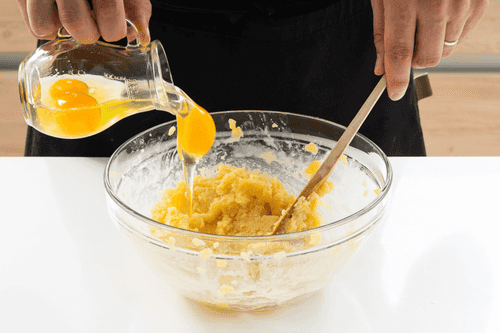 Add eggs in portions (200 g), mixing the dough with a mixer or whisk until smooth.