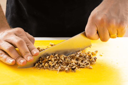 Chop the pecans and hazelnuts not too finely.