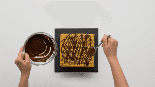 Melt the chocolate in a water bath. Decorate the finished waffle cake with chocolate and berries.