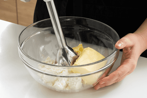 Mix room temperature butter with cottage cheese until smooth.