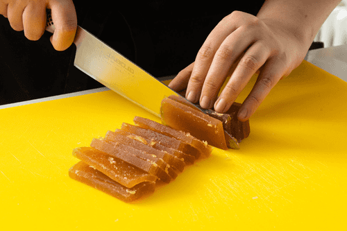 Cut the jelly into sticks 3-4 cm long and 0.5 cm thick.