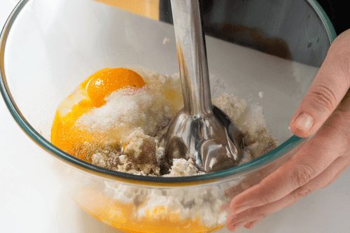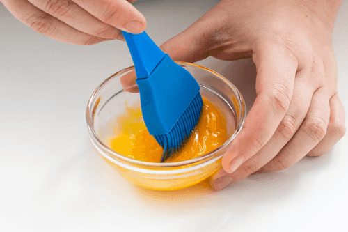 Add milk to the remaining beaten yolk, mix well, and generously coat the top of the tube with the resulting mixture. If anything is left from the yolk, pour it into the mold as well.