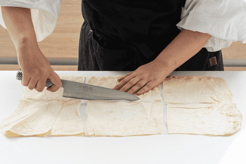 Cut each sheet of lavash along the long side into three parts, and then cut each part in half.