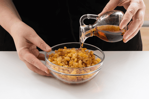 Rinse the raisins and soak them in cognac for an hour.