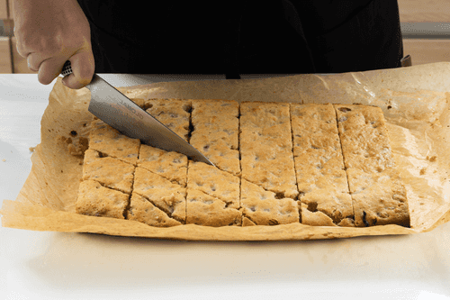 Cut the finished 'Mazurka' diagonally in two directions to make diamonds, and let it cool.