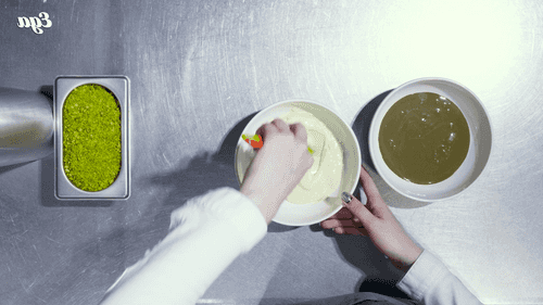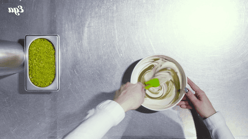Combine chocolate with 120 grams of pistachio paste and mix with a spatula until smooth.