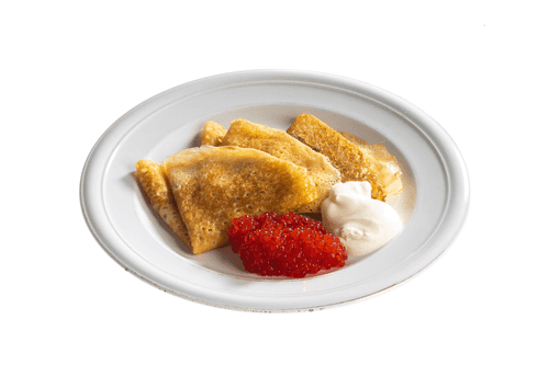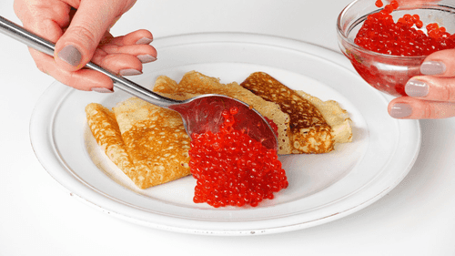 Pancakes and caviar are a very effective pair, which immediately turns an economical flour dish into a royal snack. It only seems that the first pancake will certainly turn out lumpy. In fact, if you follow all the principles and instructions, pancakes according to this recipe, tested by generations, are not difficult to prepare. And it is better to bake them at once in several pans - so that there is enough for everyone with an addition. It is important that the ingredients are fresh and of good quality, then the dough will turn into the finest lace, on which the red scatterings of caviar will look especially elegant and solemn.