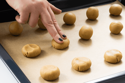 Line a baking tray with parchment paper. Place the balls on it, 5 cm apart. Gently press the balls with your fingers to flatten them.