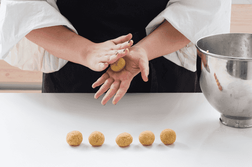 Divide the dough into pieces the size of a walnut and roll them into balls.