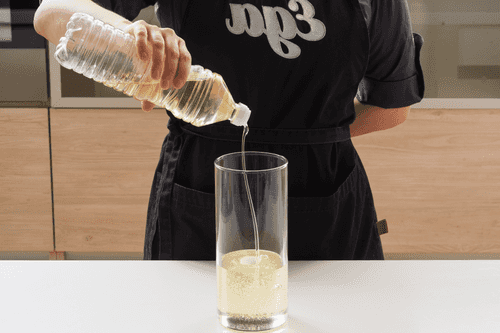 Pour the vegetable oil into a tall glass and chill in the refrigerator or freezer.