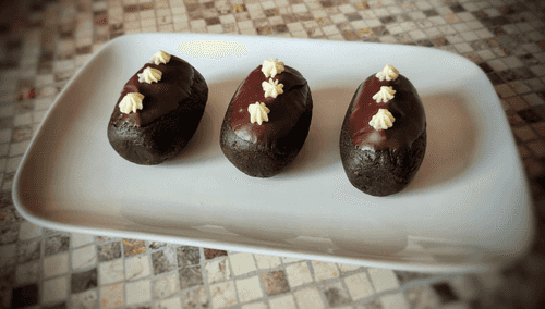 Carefully dip the 'potatoes' in chocolate ganache and place them on a dish that can be easily put in the cold.
