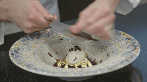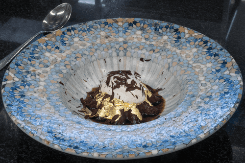 A dessert of rare beauty from the Moscow restaurant Lumicino. No flour required, just manual dexterity and amaretti almond cookies.