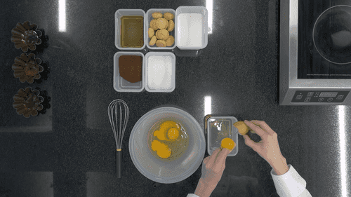 Pour the resulting mixture into molds over the caramel.