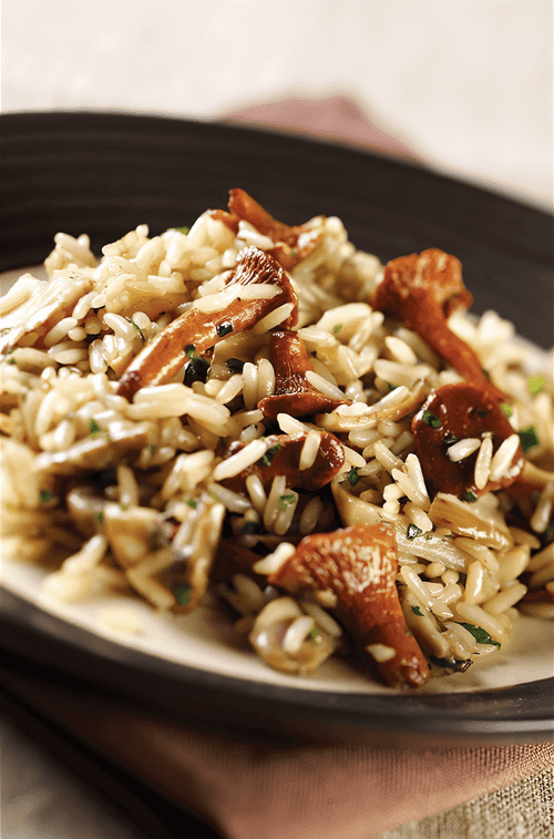 After that, mix the mushrooms with the cooked rice, adding salt and pepper.
