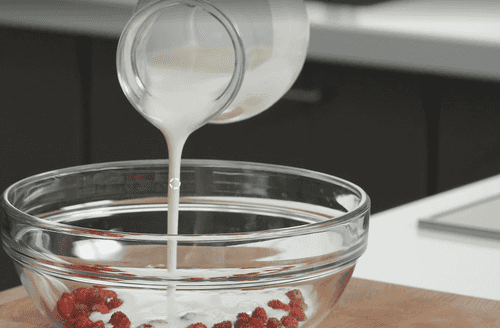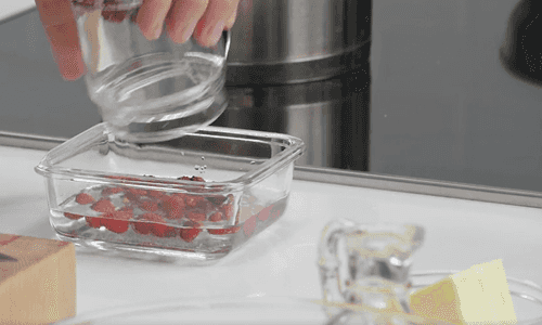 Salt the strawberries. Place 30 grams of berries in a solution of warm water with salt (10%) and basil to taste for 20 minutes.