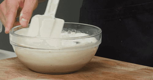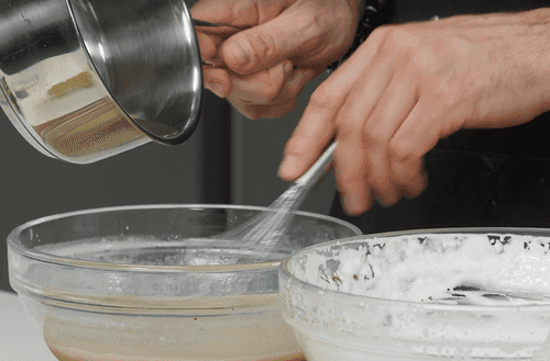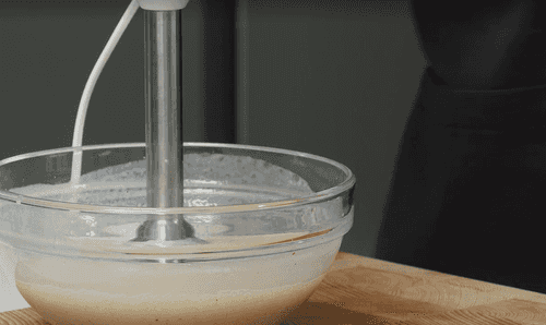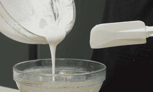 Whisk to create a funnel in the mixture with fermented baked milk and introduce gelatin in a thin stream.